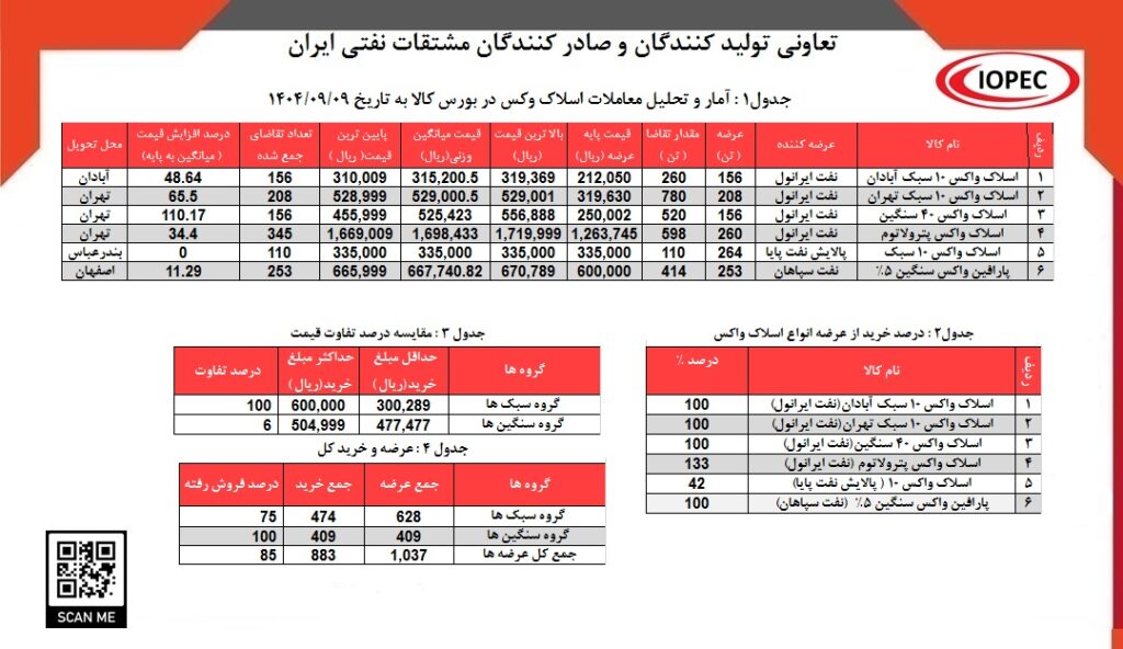 آمار و تحلیل معاملات اسلاک وکس در بورس کالا به تاریخ 1404/09/09‎