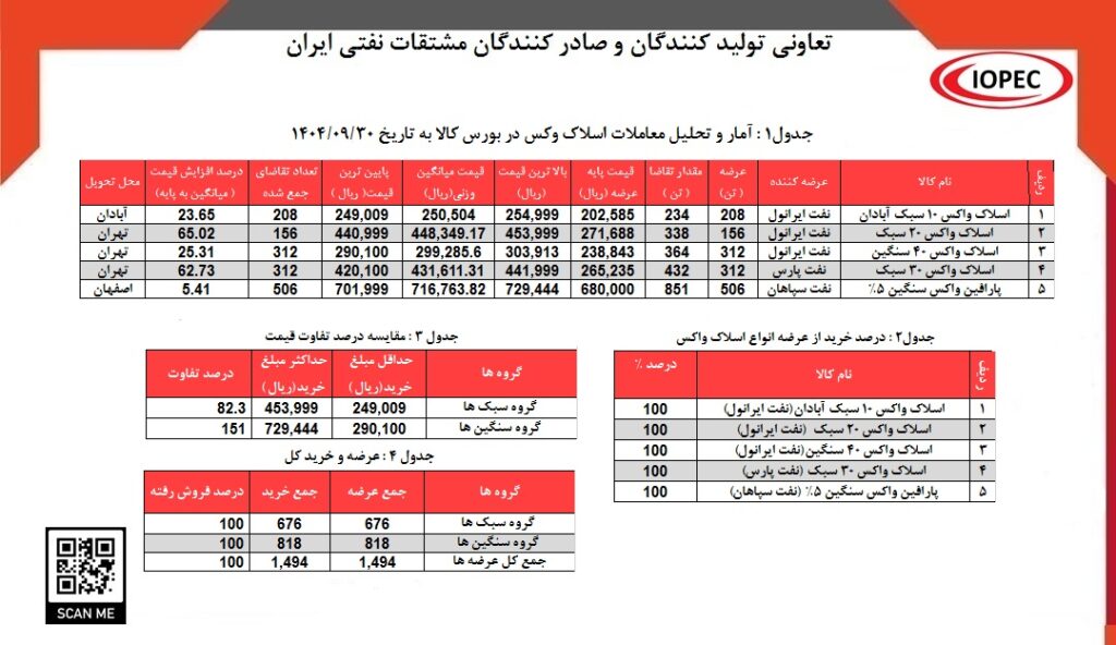 آمار و تحلیل معاملات اسلاک وکس در بورس کالا به تاریخ 1404/09/30‎