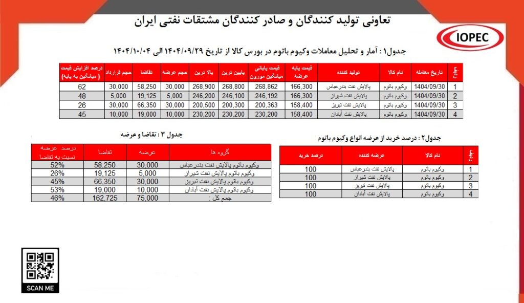 آمار و تحلیل معاملات وکیوم باتوم در بورس کالا از تاریخ 1404/09/29 الی 1404/10/04‎